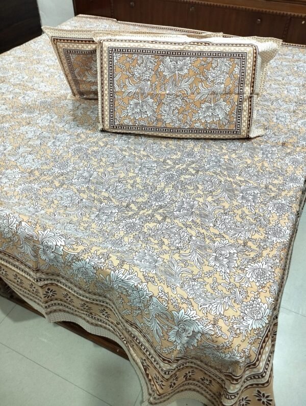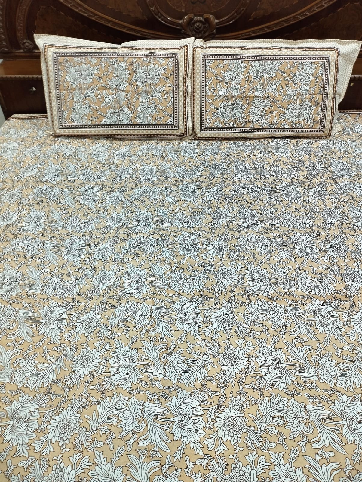 Orange Flowery King Size Bedsheet with 2 Pillow Covers