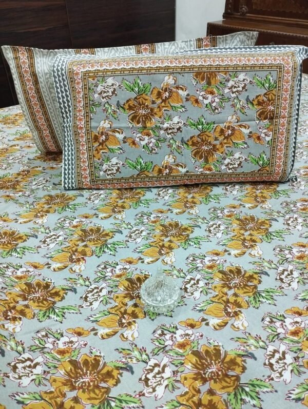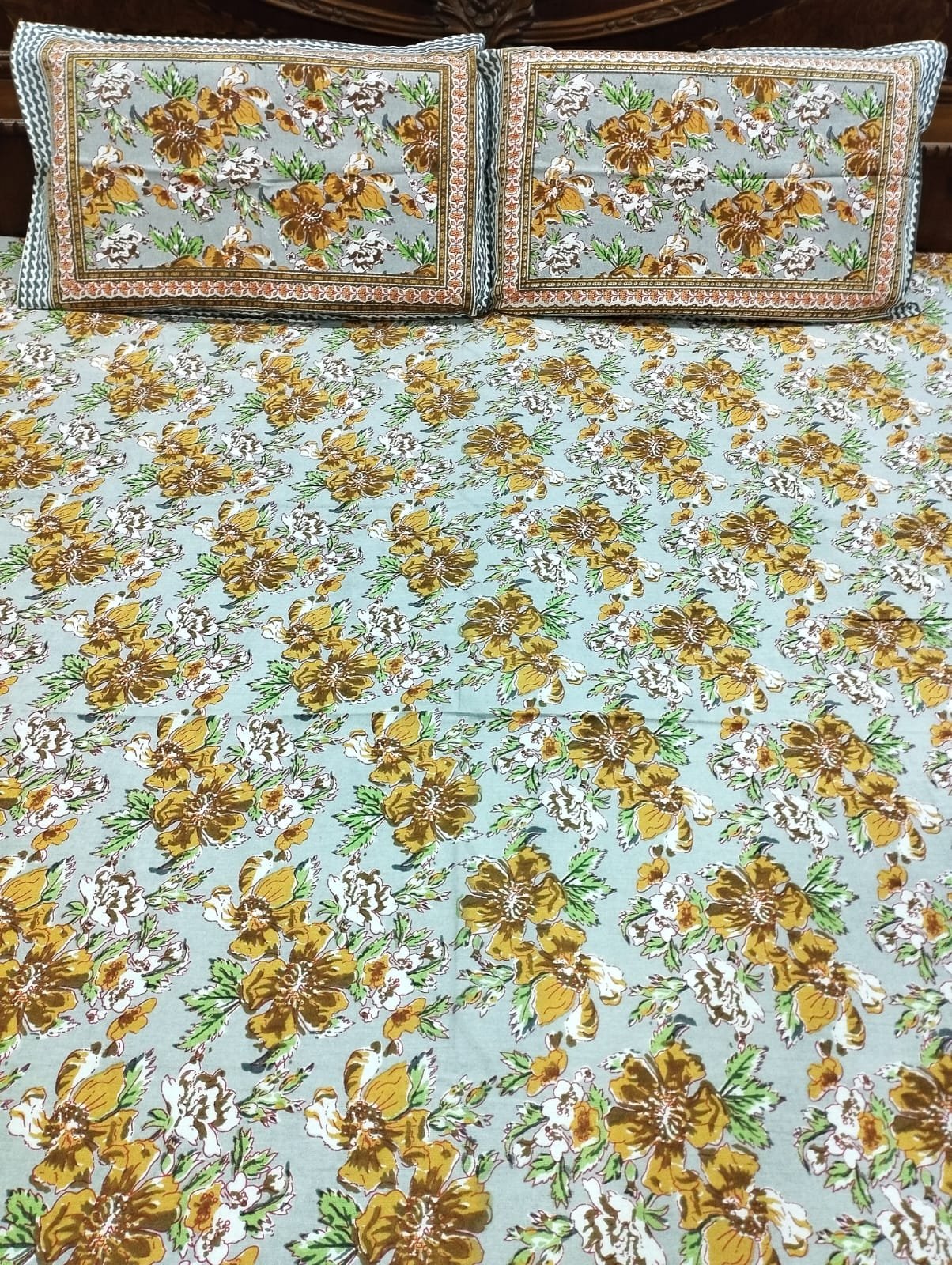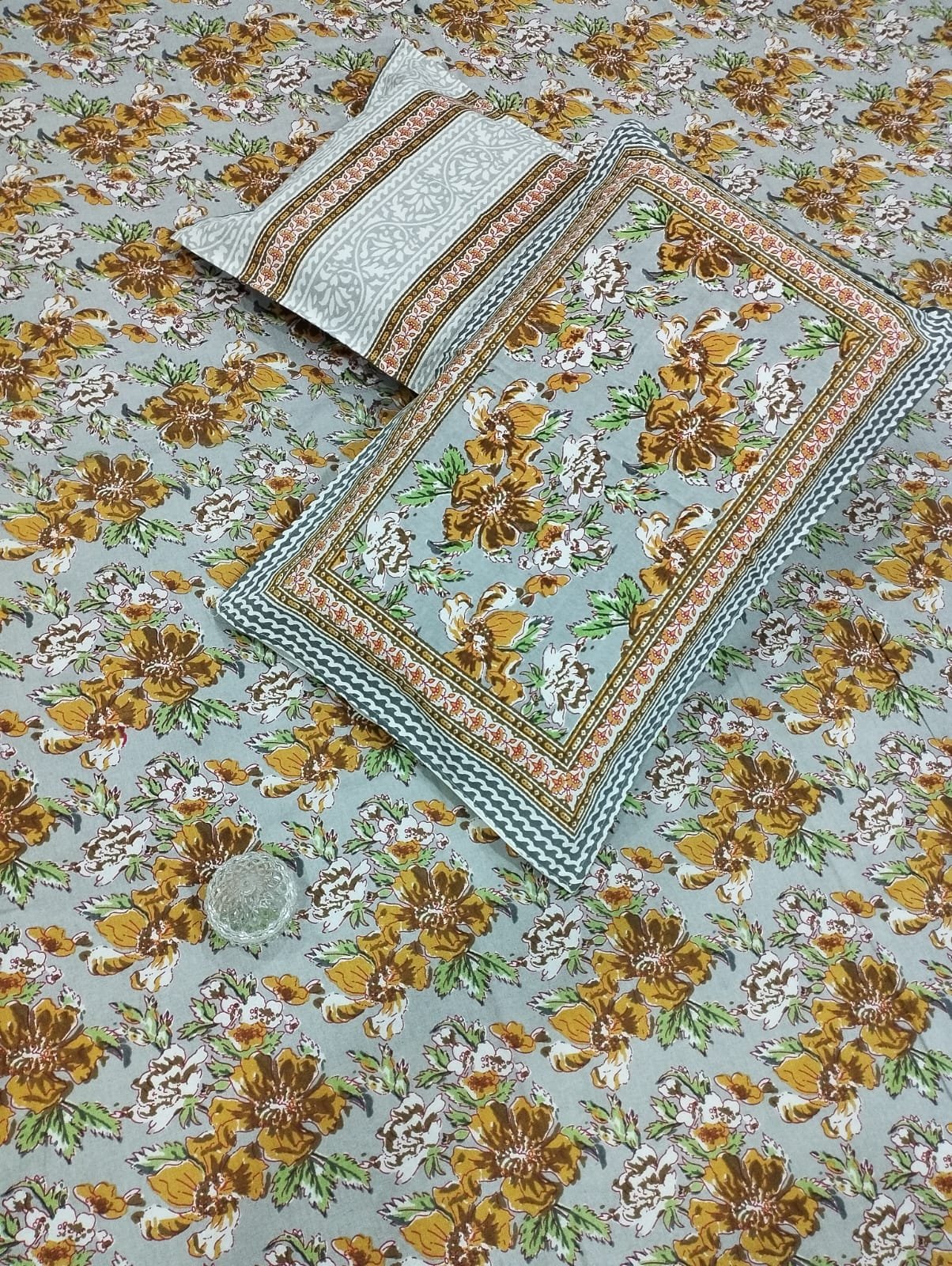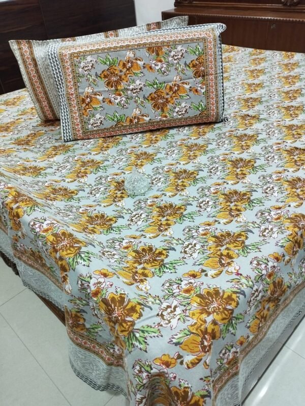 Orange Flowery King Size Bedsheet with 2 Pillow Covers