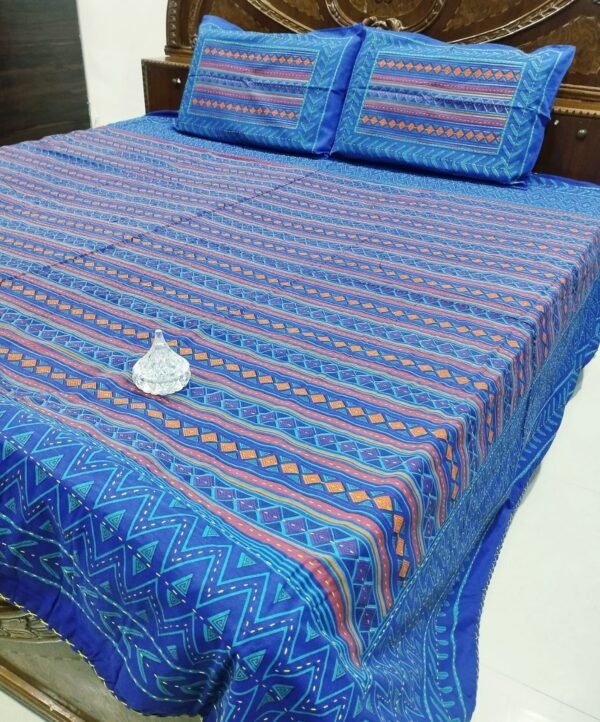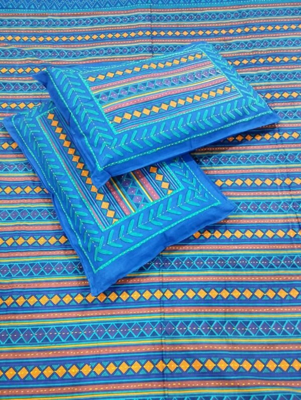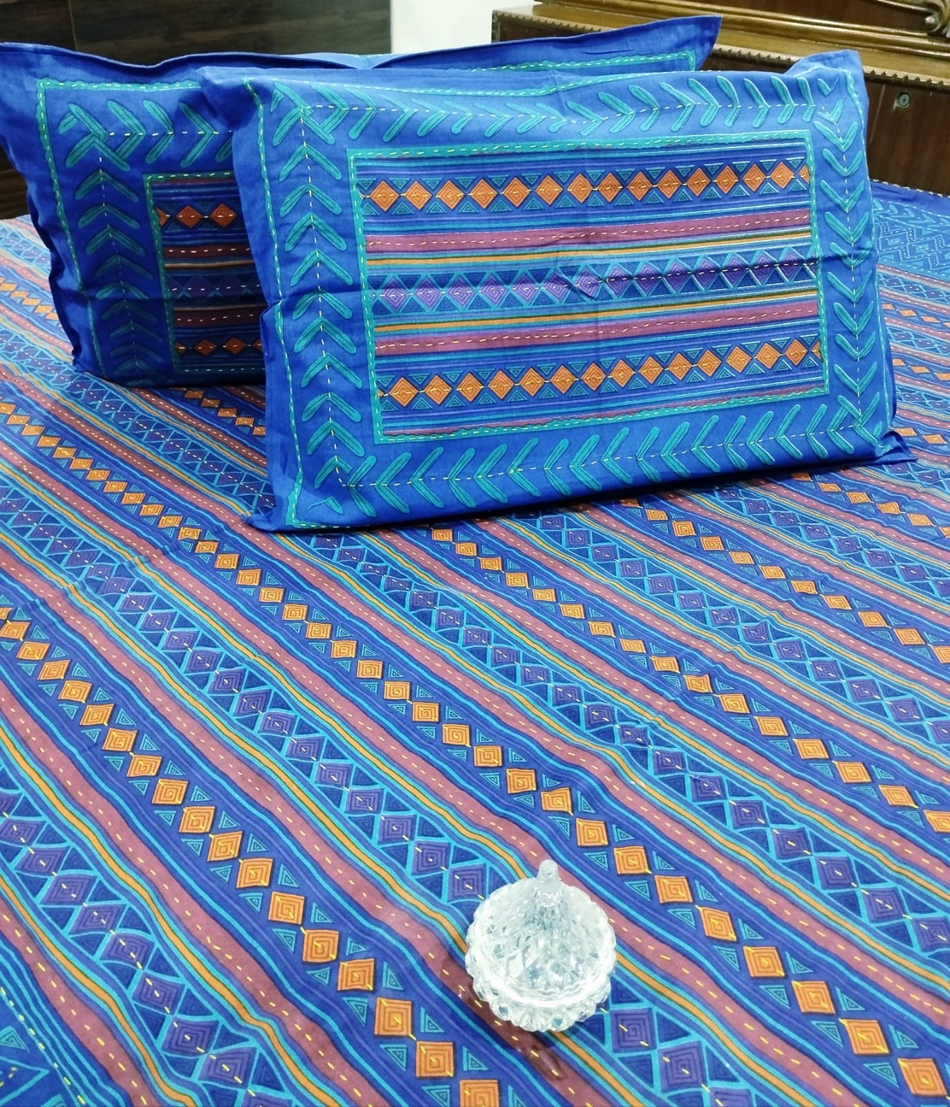 Traditional Kantha Work Double King Size Bedsheet with 2 Zipped Pillow Cover